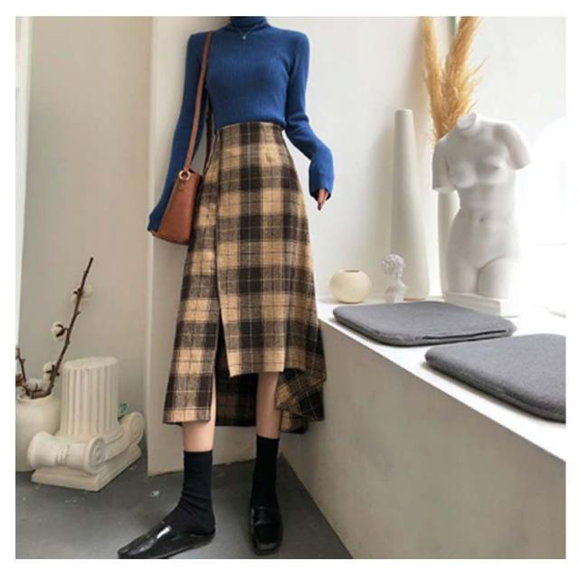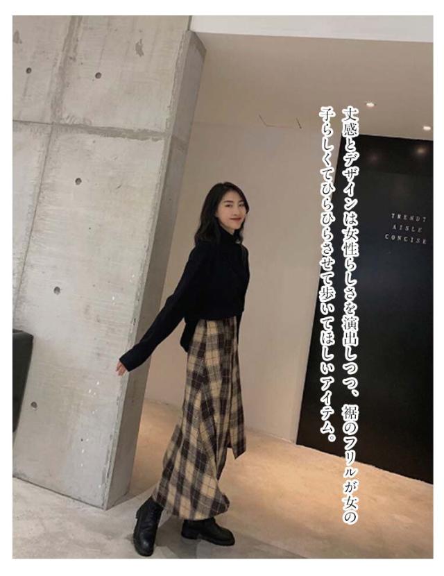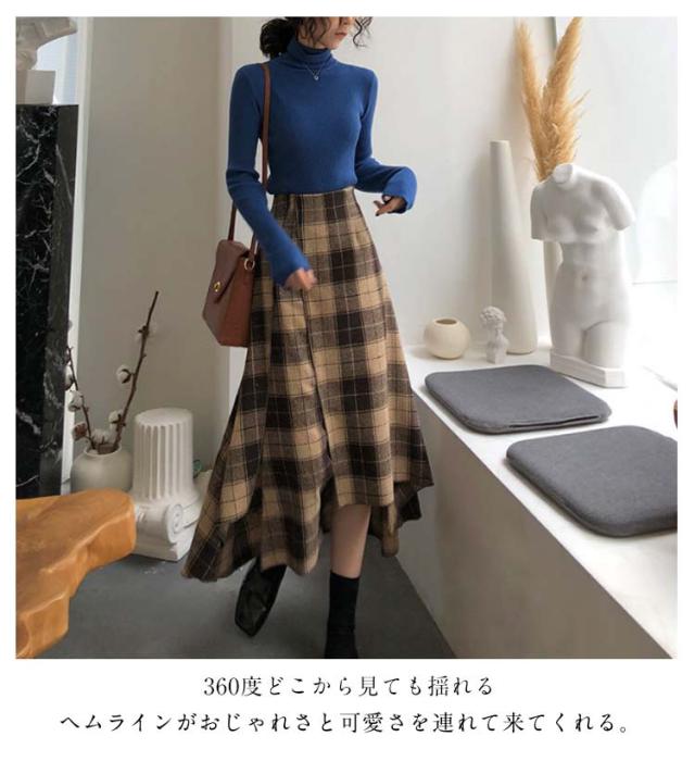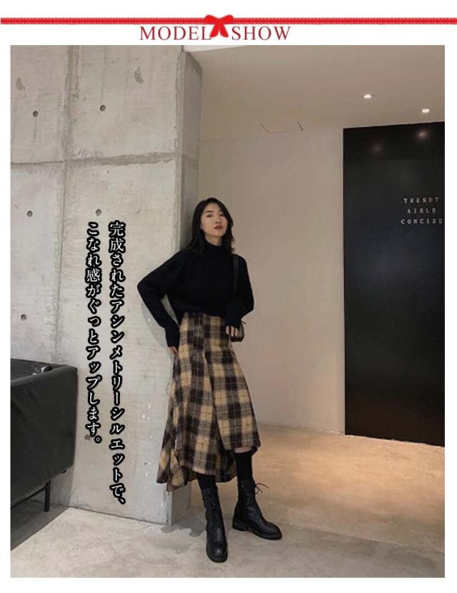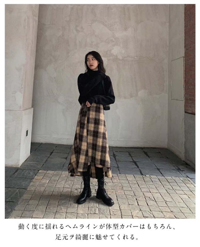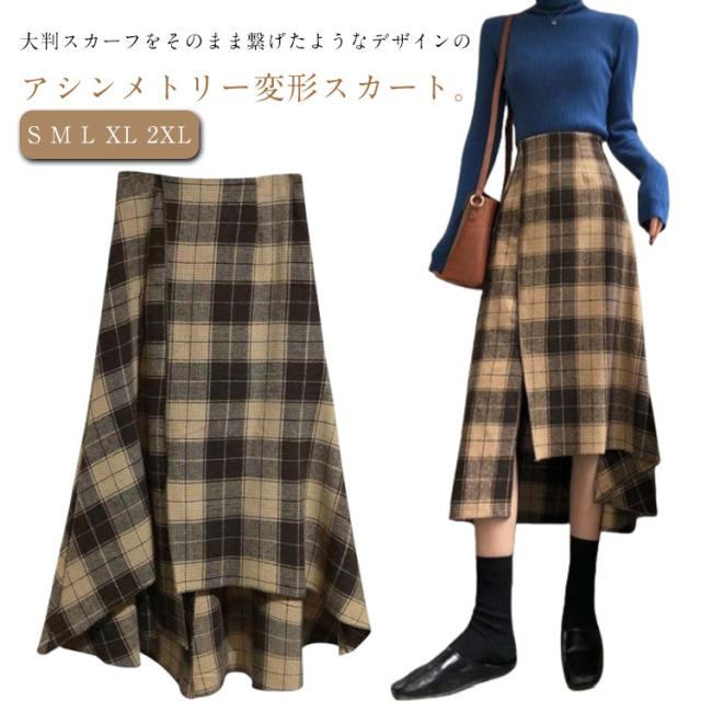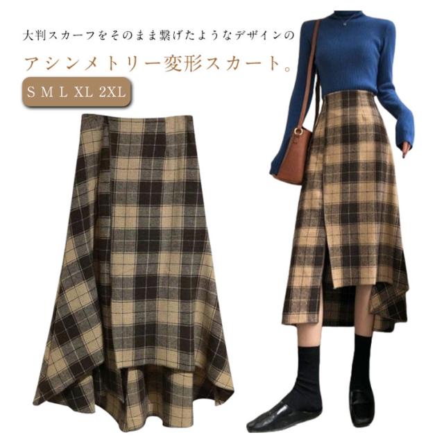レディース きれいめ アシンメトリー フレアスカート 裾変形デザイン スカート ミモレ丈 ロングスカート チェックスカート ボトムス アシンメトリー aライン ゆったり 体型カバー チェック柄 カジュアル 春 夏 秋