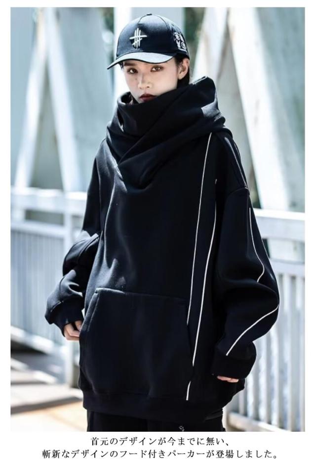| M-3XL!大きなフードと二重のハイネックで顔を隠せるので、街中でも誰にも気づかれません このフード付きスパーカーを着て街を歩けば、とても安心感があります! 首元のデザインが今までに無い、斬新なデザインのフード付きパーカーが登場しました。 一見すればマスクやスカーフのようなデザインが首元に施されており、ストリート感タップリ生地はさらさらとした生地感で長い期間着用できてコーデの幅も広がります。 これ1枚でもインナーとしてもしっかり存在感を表現してくれますよ。 男性が着ると大人格好いい印象を与えてくれますが、女性が着る場合は体型カバーができて、男女兼用の一着となっています。 | |