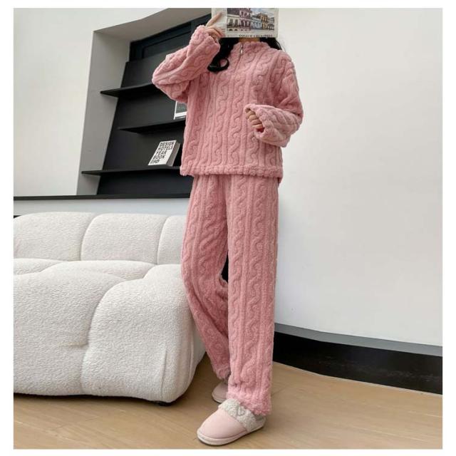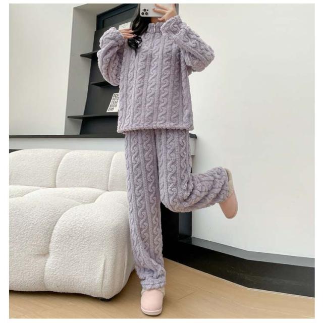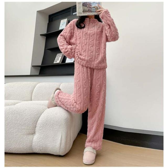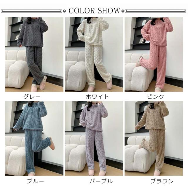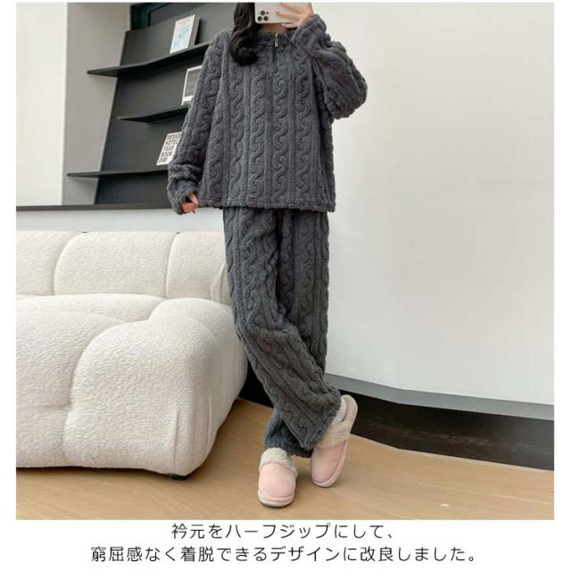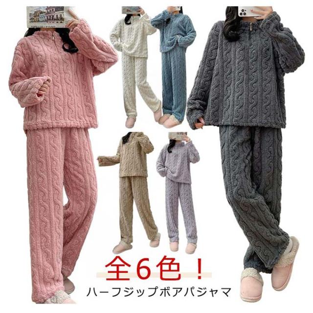 ルームウェア レディース 冬 あったか もこもこ ボア パジャマ 上下 長袖 ハーフジップ トップス ルームパンツ セット 冬 ふわふわ 暖かい 部屋着 ナイトウェア ゆったり 無地 軽量 春 秋 冬