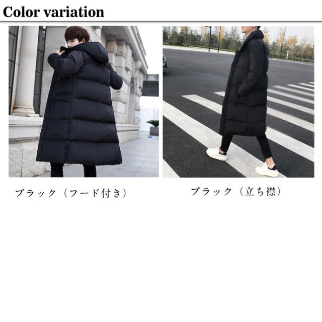 コート ダウン風ジャケット ロング丈 無地 ロングコート 中綿ジャケット 膝下 防風 2タイプ フード付き 中綿コート 冬 アウター メンズ 防寒 厚手 立ち襟 シンプル ダウン風コート 暖かい 大きいサイズ コート ゆったり アウトドア 通勤 通学 カジュアル