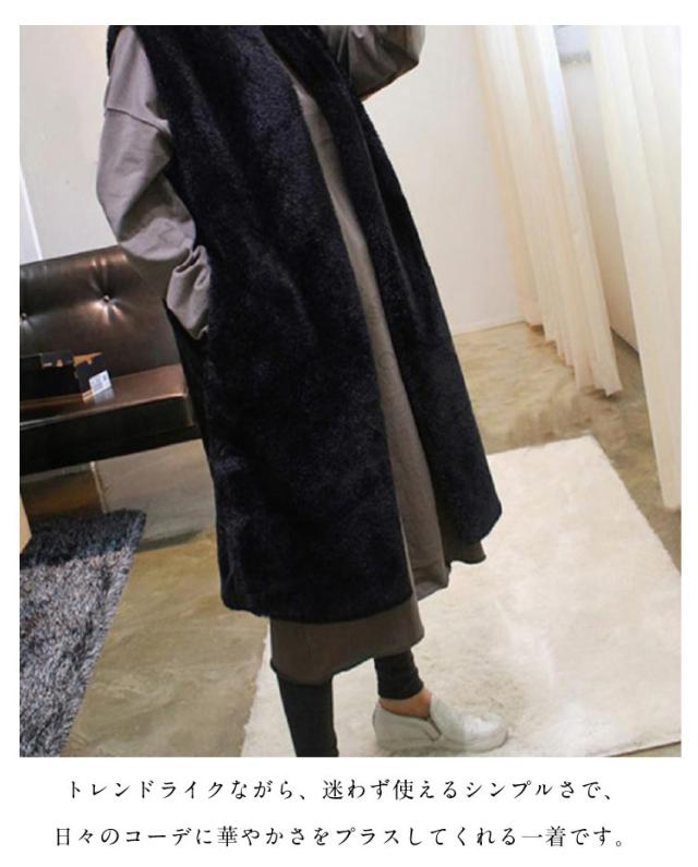ふわふわ 袖なし 柔らかい レデイース フェイクファーコート 毛皮コート コート 前開き エコファー ひざ下 もこもこ フェイクファーコート ボリューム ファー ジレ あったか ロング丈 ノースリーブ フェイクファー 暖かい 防寒コート シンプル