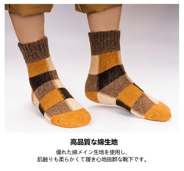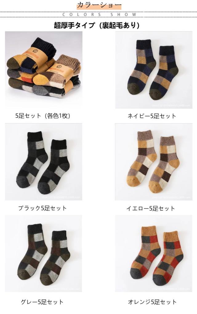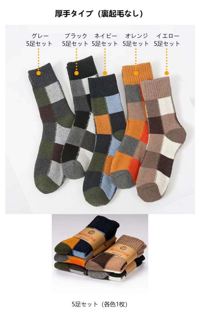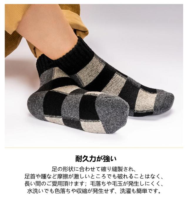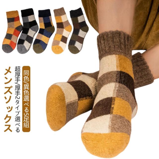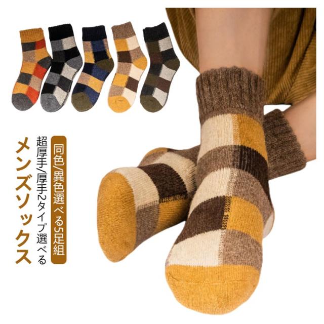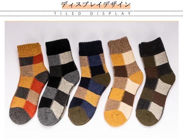 5足組 メンズソックス ビジネスソックス 総柄 ウール混 綿混 ハーフ丈 男性 靴下 メンズ 冬用 暖かい 厚手 極厚 超厚手 裏起毛 クルー丈 ソックス おしゃれ クルーソックス カジュアルソックス 冷え対策 保温 防寒 暖かい あったか チェック柄