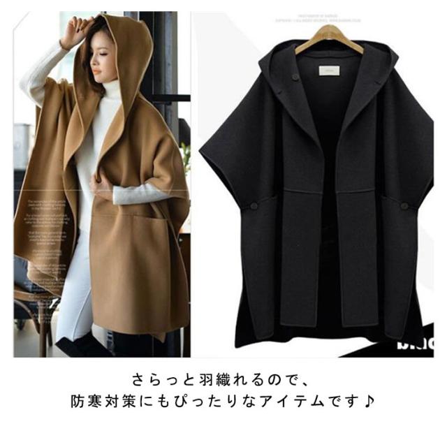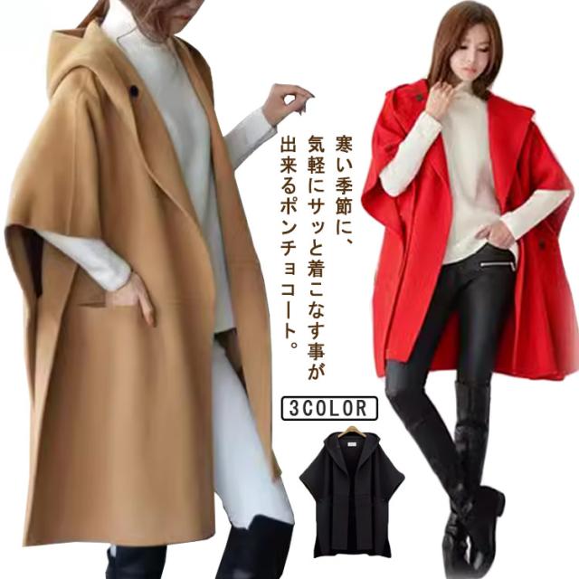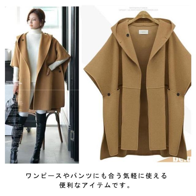 ドロップショルダー 大きいサイズ 体型カバー ポンチョ フーディーコート ビッグシルエット コート アウター レディース ポンチョコート ドルマンスリーブ ポンチョ 羽織り 秋冬 ケープコート エレガント 通勤