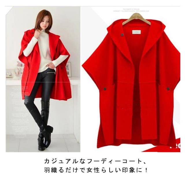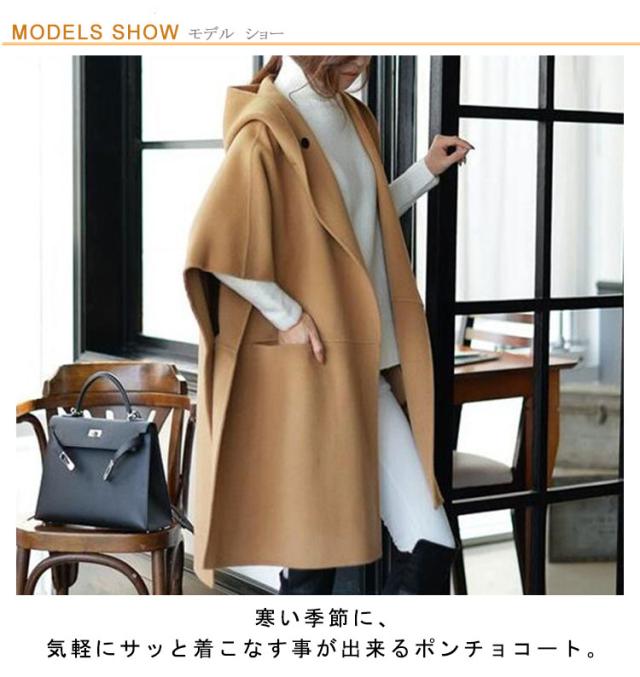 | 寒い季節に、気軽にサッと着こなす事が出来るポンチョコート。 さらっと羽織れるので、防寒対策にもぴったりなアイテムです♪ ワンピースやパンツにも合う気軽に使える便利なアイテムです。 カジュアルなフーディーコート、羽織るだけで女性らしい印象に! | |