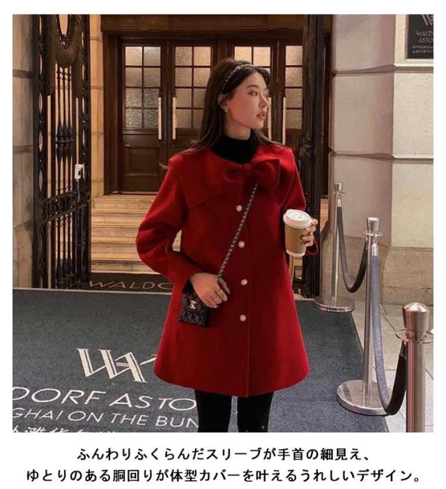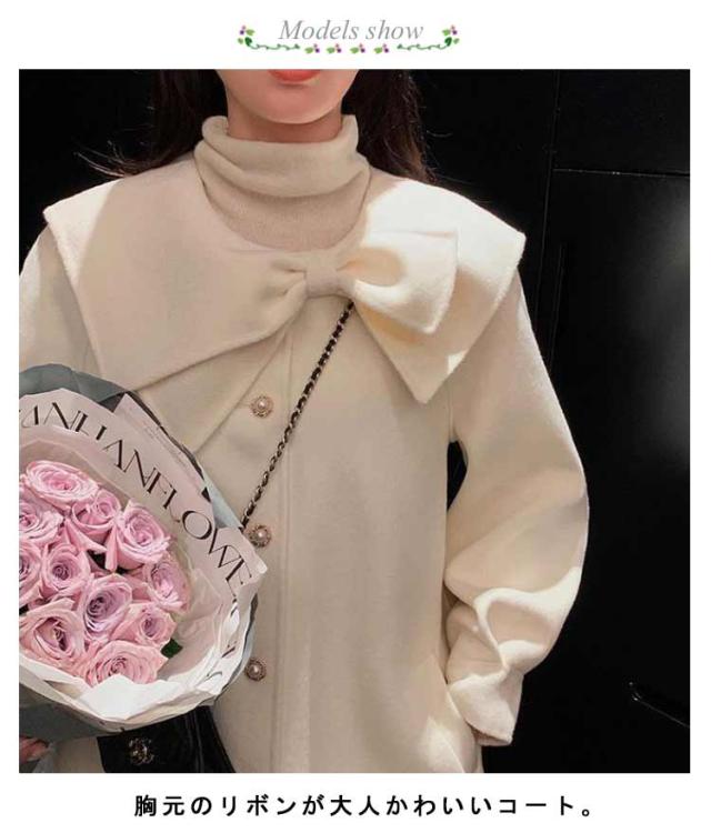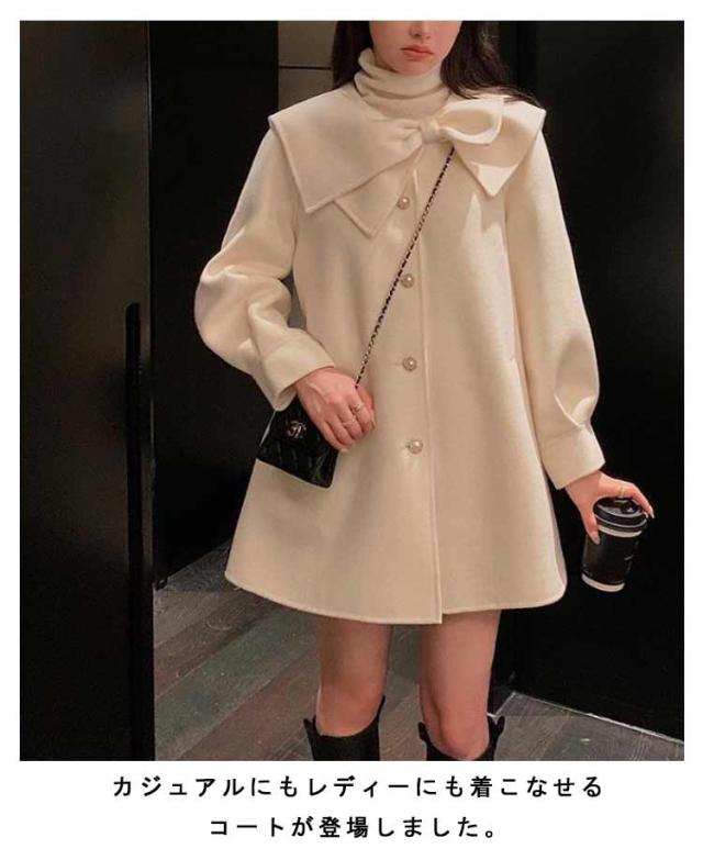 レディース 中綿コート セーラーカラー アウター ビッグリボンコート レディース パールボタン 秋 冬 可愛い 厚手 ダッフルコート 大人可愛い ダッフルコート 羽織