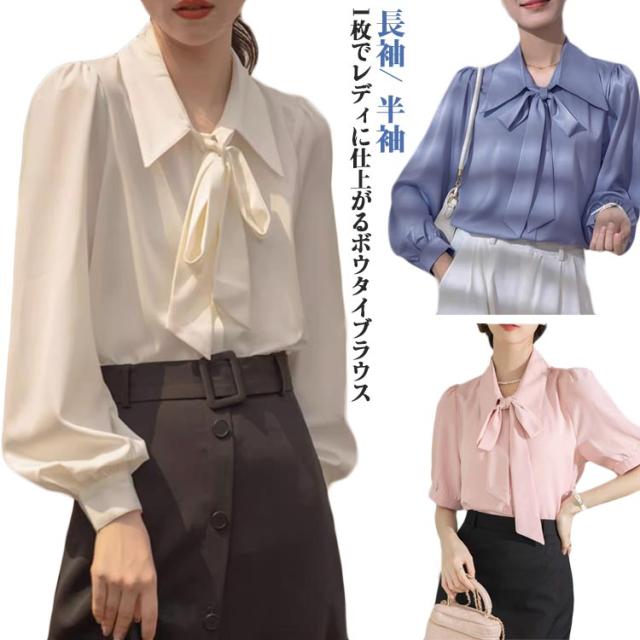 ブラウス カジュアル リボンタイ 長袖 半袖 トップス リボン ビジネス ボウタイ レディース オフィス 通勤 仕事 ワイシャツ フォーマル 女性 事務服 制服 入園式 おしゃれ ブラウス きれいめ 春