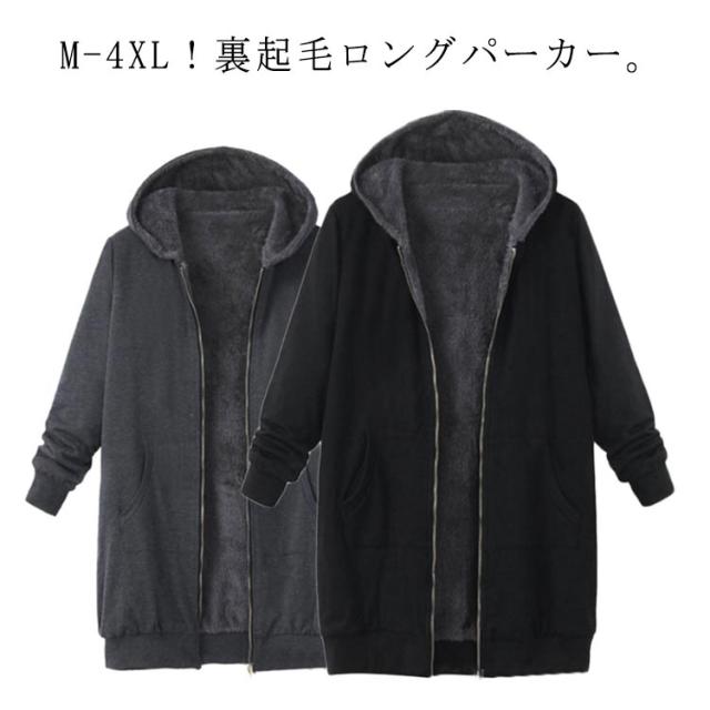 裏起毛 パーカー ロングパーカー フード付き ジップパーカー ロングパーカー レディース 裏ボア 秋 スウェット ジップアップパーカー ジップアップ カーディガン チュニック 冬 あったか ミドル丈 厚手 上着 羽織り 無地