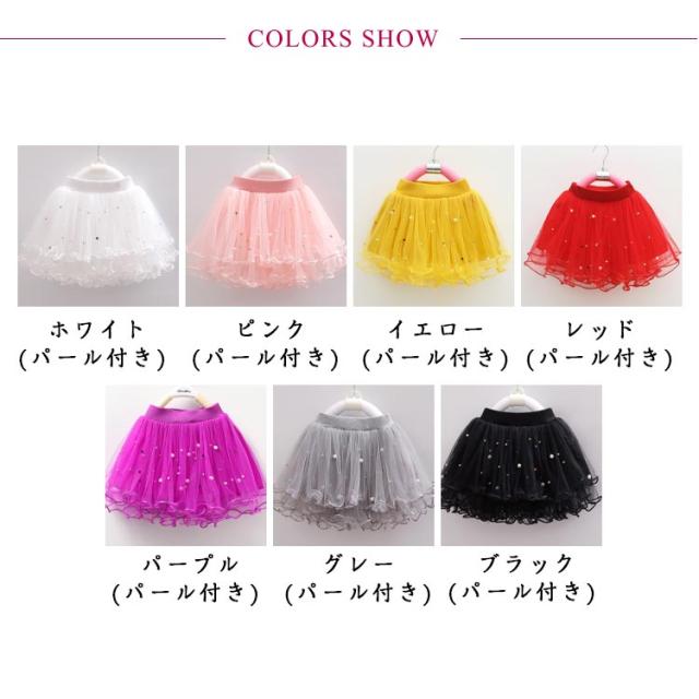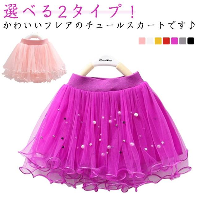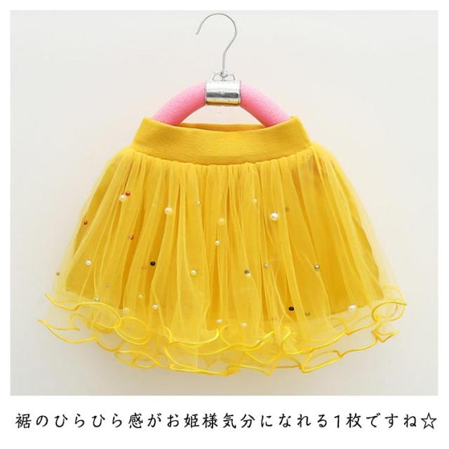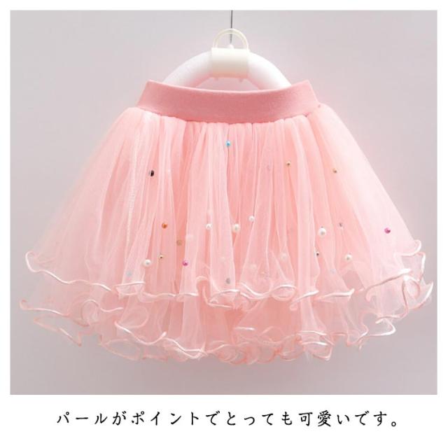 キッズ スカート チュールスカート ボトムス 女の子 ミニスカート こども フレアスカート 子供服 パール ふわふわ チュール 春服 秋服 冬服 春秋冬 送料無料 発表会 結婚式 お誕生日 ギフト