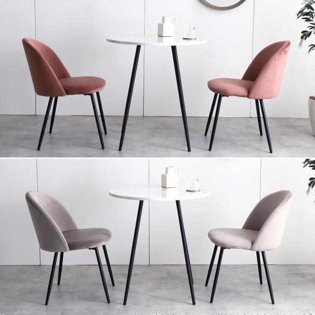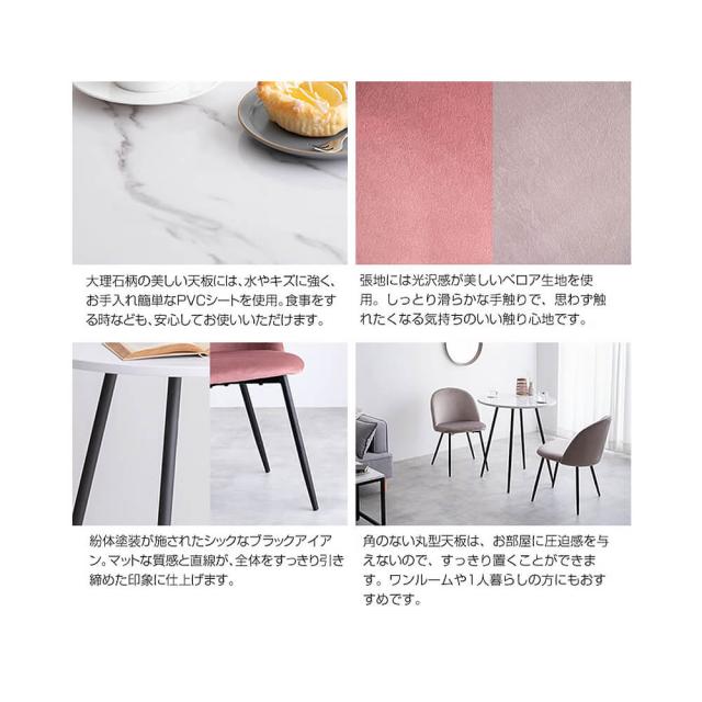 清潔感溢れる上品な佇まいのEleanor(エレノア)の大理石柄テーブルとベロアチェア2脚のダイニングセット。