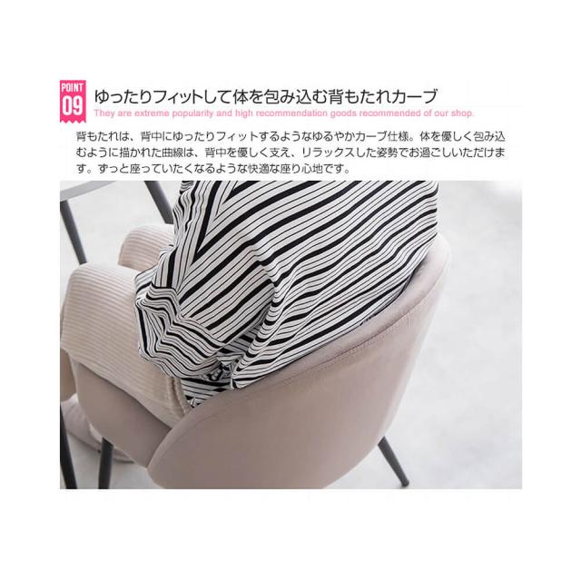 チェアはシンプルなフォルムながら触り心地の良いしっとりとした美しいベロア素材に、