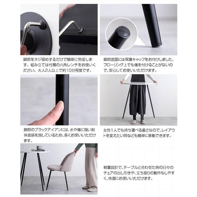 角のない丸型の天板なので、お部屋に圧迫感を与えず、小さなお子様のいらっしゃるご家庭にもオススメです。