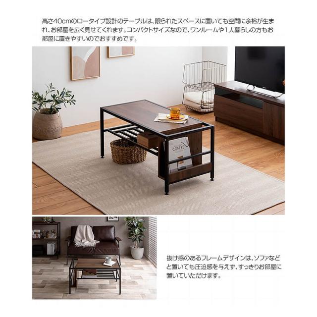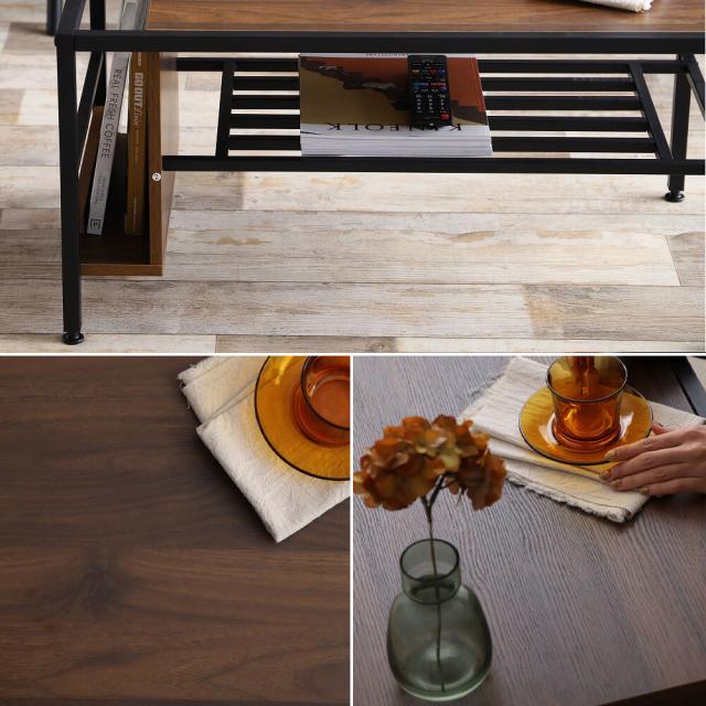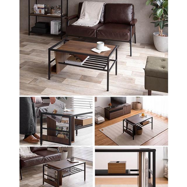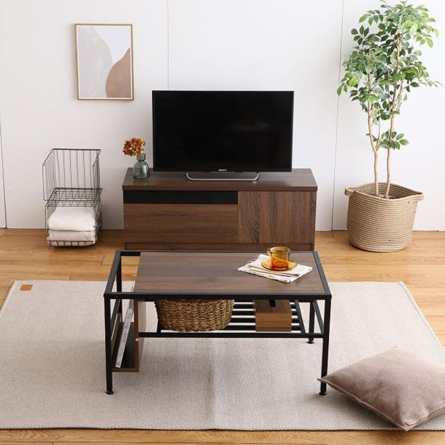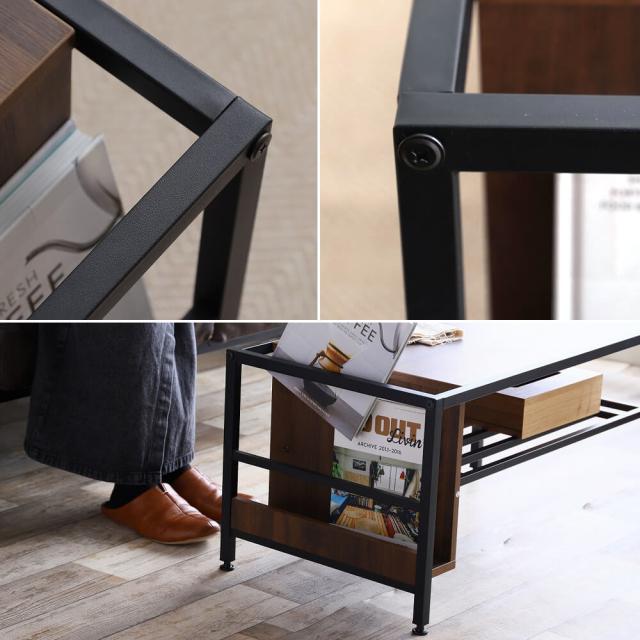 落ち着いたブラウンカラー木目とブラックスチールが大人の雰囲気を漂わせるKeelの収納付きセンターテーブル。