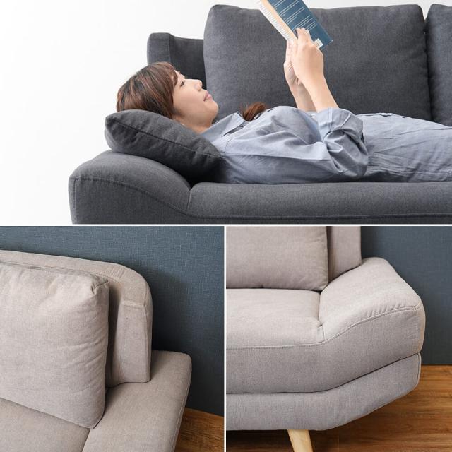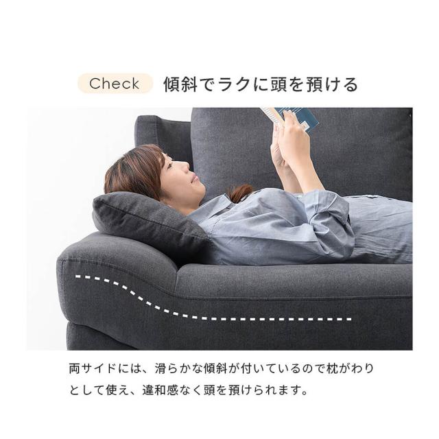 両サイドにひじ掛けを無くして、自然な傾斜をつけ頭を楽に預けられるワイド2人掛けソファーBright(ブライト)。
