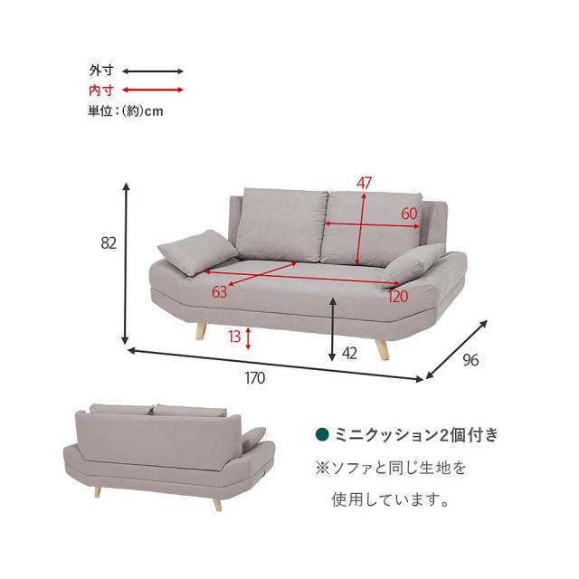 幅 170cm × 奥行 96cm × 高さ 71cm / 82cm × 座面高 31cm / 42cm素材