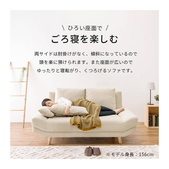 座面の奥行き63cmが幅170cmとワイドな仕様なので足を伸ばして、ゴロ寝ができるくらいの広さ。