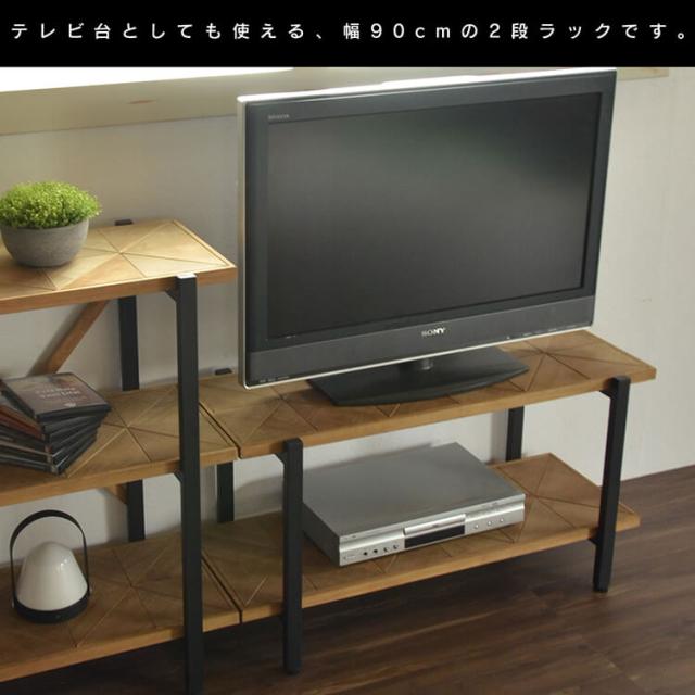 Kaleido(カレイド) 古材風2段ラック 幅90cmタイプ ラック 棚 シェルフ オープンシェルフ オープンラック 木製 ディスプレイラック ナチュラル 北欧 2段 二段 スリム 収納 コンパクト