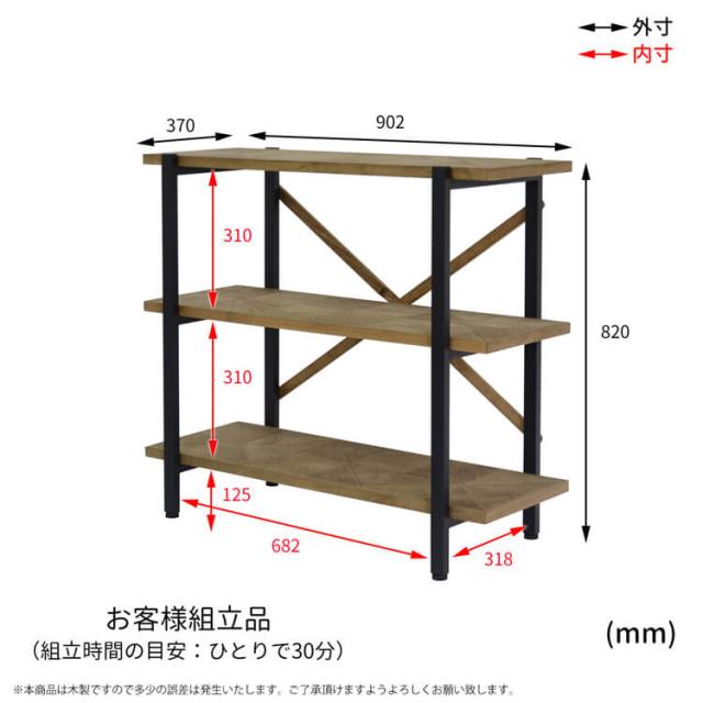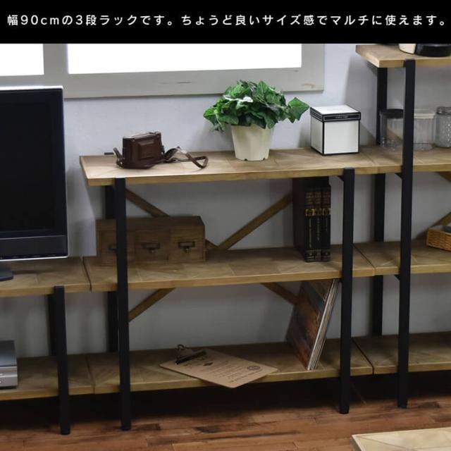 Kaleido(カレイド) 古材風3段ラック 幅90cmタイプ ラック 棚 シェルフ オープンシェルフ オープンラック 木製 ディスプレイラック ナチュラル 北欧 3段 三段 スリム 収納 コンパクト