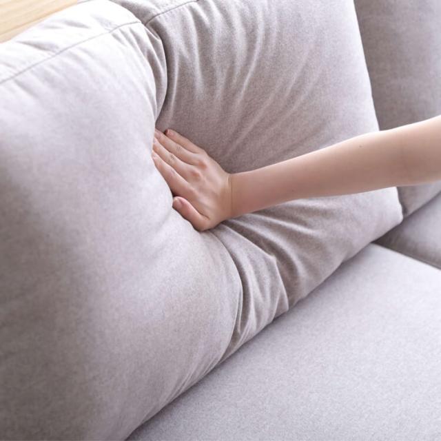 座面、背もたれクッションはファブリック素材なので、夏場に蒸れることなく、冬場もあたたかく感じられ、季節に関わらず気持ち良くご使用いただけます。