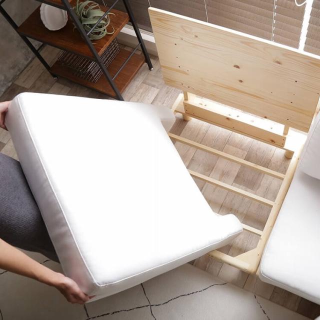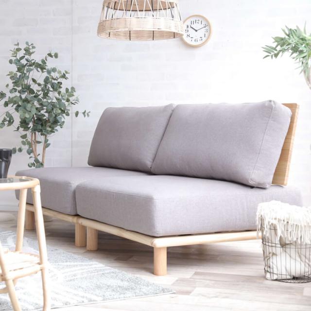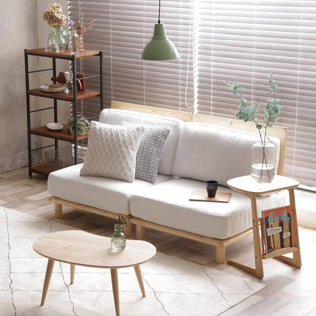 爽やかな印象を与えてくれる天然木フレームと清潔感あふれるホワイトファブリック素材の組み合わせが、ナチュラルな雰囲気を一層引きたてる2人掛けソファーCord(コルド)。