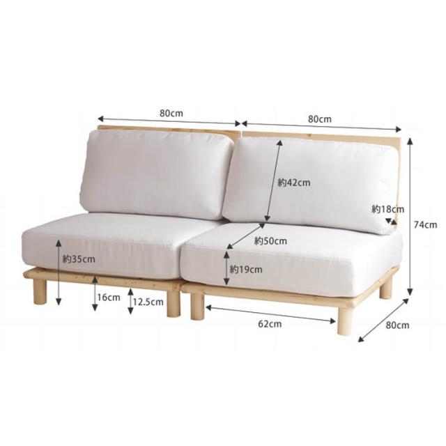 ■ サイズ幅160cm(80cm+80cm)×奥行80cm×高さ74cm (座面高 約35cm)