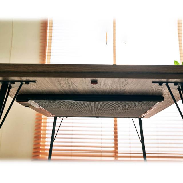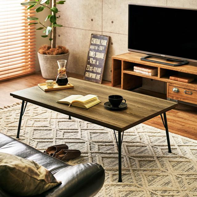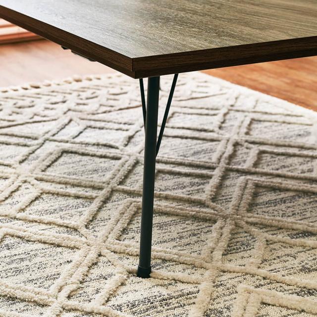 美しい木目調の天板とクールなブラックアイアンの組み合わせがモダンな雰囲気を醸し出すリビングこたつテーブルRaw(ロウ)。