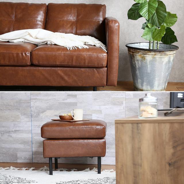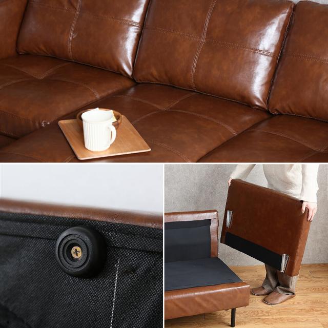 使い込まれたまるで本革のような深い色合いのヴィンテージテイストの高級感あるレザー風3人掛けカウチソファーCamel(キャメル)。