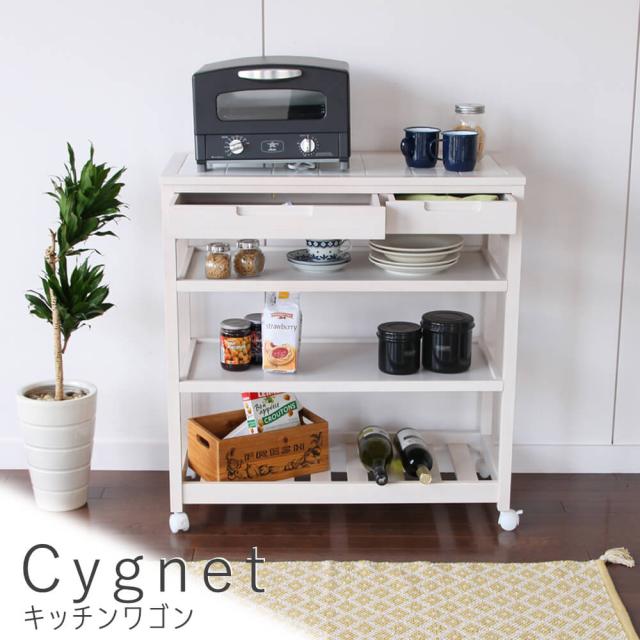 Cygnet(シグネット) キッチンワゴン 天然木 木製 ワゴン キャスター付 キッチンワゴン タイルトップワゴン 天板タイル