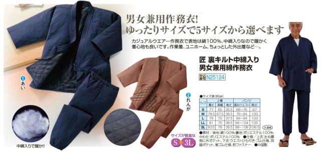 匠 裏キルト中綿入り 男女兼用綿作務衣 全2色 作務衣 さむえ 和服 作業着 メンズ 紳士服 シニア 男性 レディース 婦人服 ミセス シニア 女性 無地 ネイビー ブラウン 紺色 藍色 茶色 あったかい 暖かい 中わた 防寒 部屋着 シニアファッション 40代 50代 60代 70代 80代 父の日 お父さん おじいちゃん 母の日 お母さん おばあちゃん 秋冬