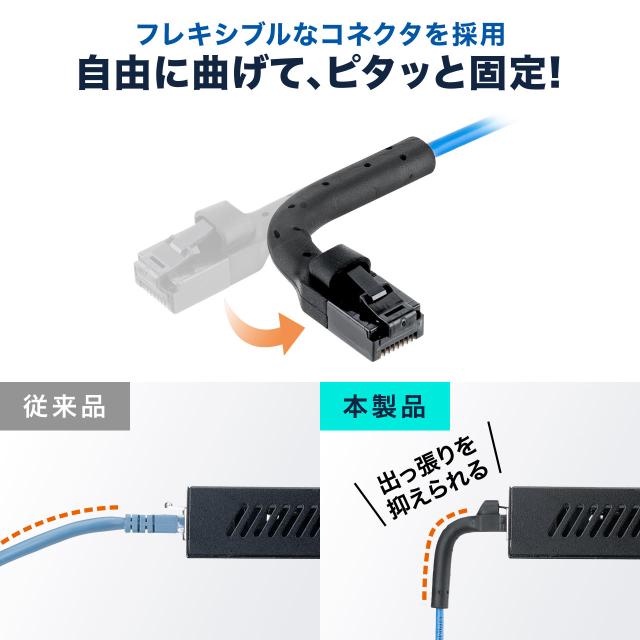 ●パソコンでの接続、サーバーなどのパッチパネルでの接続の際、ケーブルの出っ張りを抑えて固定できます。