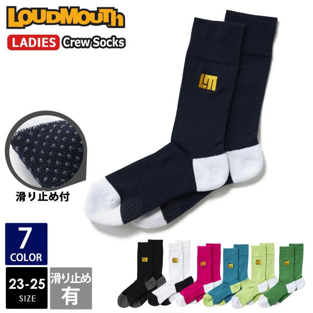 ラウドマウス ゴルフウェア ソックス レディース クルー丈 スポーツブランド 靴下 カラフルソックス 滑り止め 切替配色 無地 ロゴ刺繍 23-25cm ショートソックス カラバリ おしゃれ 男女兼用 黒 白 Loudmouth outfit