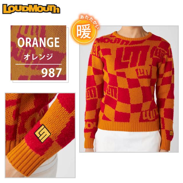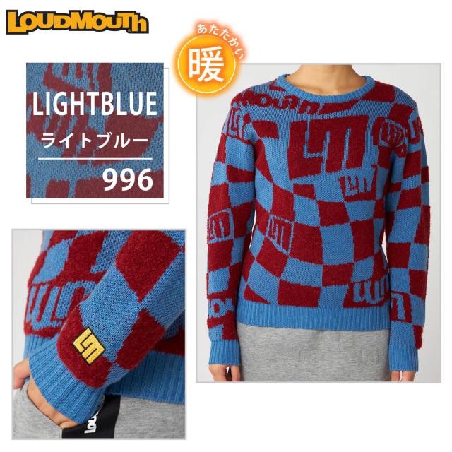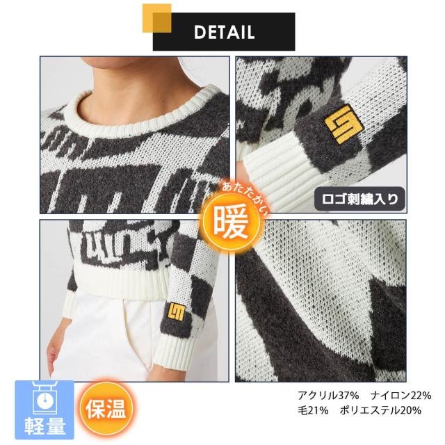 ラウドマウス ゴルフウェア レディース セーター ブランド ロゴ 秋 冬 ニット 軽量 5者混 モックネック プルオーバー トップス 防寒 総柄 おしゃれ 派手 カジュアル 黒 白 灰色 Loudmouth 2024FW outfit