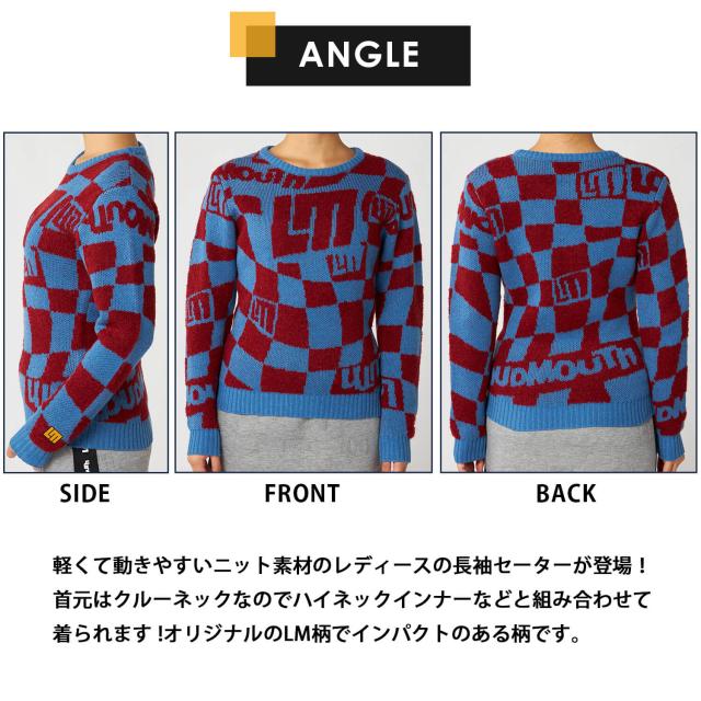 軽量クルーネックニットセーター 人気のラウドマウスゴルフから軽くて動きやすい5者混ニット素材のレディースのセーターが登場! オリジナルのLM柄でインパクトがあるデザインです。 首元はクルーネックなのでハイネックインナーなどと組み合わせて着られます ! ゴルフやスポーツ、ジムでのトレーニングなど様々なシーンで大活躍です。 寒い日のラウンドはもちろん日常でもお使いいただけます。 |