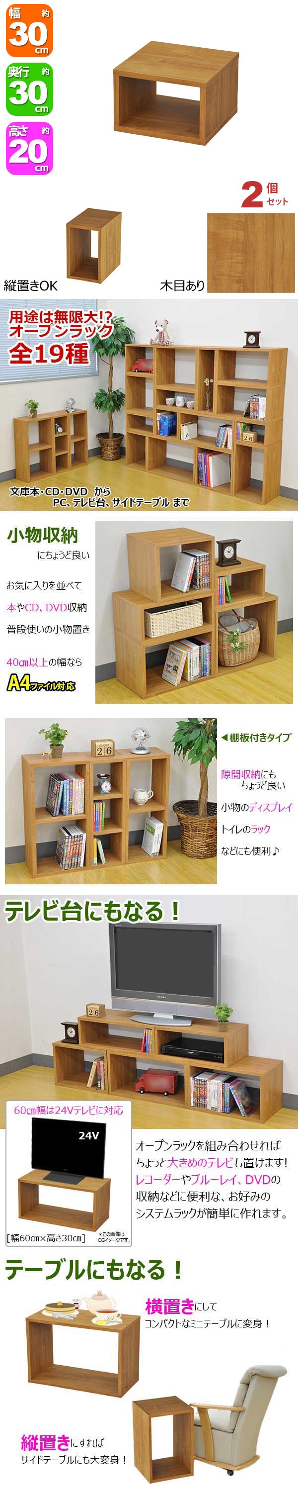 オープンラック 1段 30×20 2個セット 奥行30cm 収納 棚 ブラウン 茶色 おしゃれ 組み合わせ自由 幅30cm 高さ20cm 頑丈 耐荷重20kg 積み重ね 収納 ラック ディスプレイラック 卓上ラック 飾り棚 本棚 コミック 漫画 文庫本 雑誌 アクスタ 机上ラック モニター台 木製