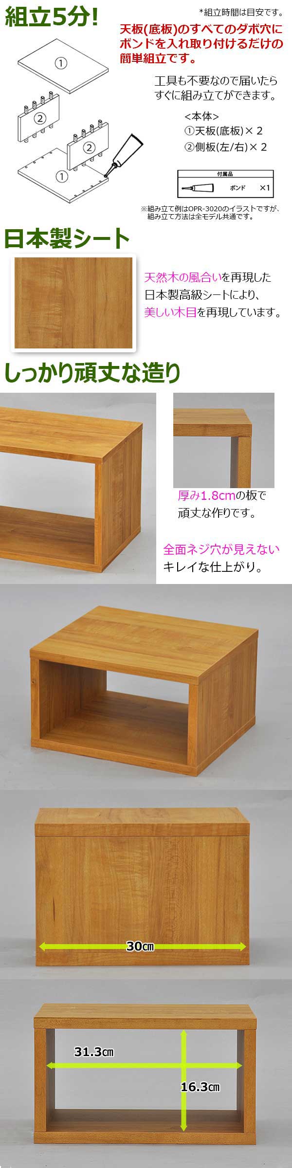 ・各板の厚みは約1.8cmもあるので頑丈な作りになっています♪