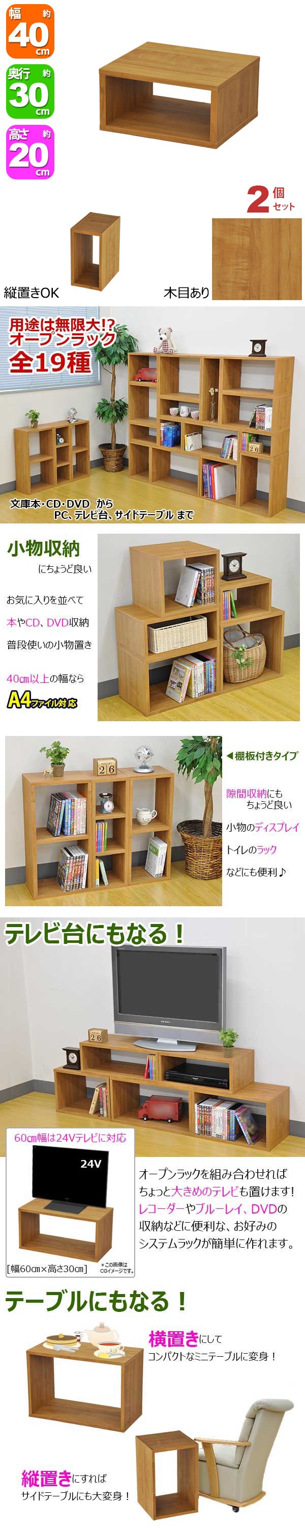 ・A4ファイルを収納したり、小型のテレビ台やパソコン台として使ったり、花台として使ったりとアイディア次第で様々な使い方ができます!