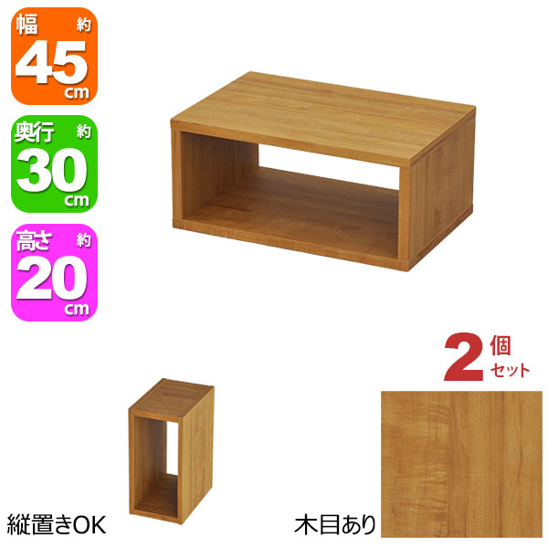 オープンラック 1段 45×20 2個セット 奥行30cm 収納 棚 A4対応 ブラウン 茶色 おしゃれ 組み合わせ自由 幅45cm 高さ20cm 頑丈 耐荷重20kg 積み重ね 収納 ラック ディスプレイラック 卓上ラック 飾り棚 本棚 コミック 漫画 雑誌 アクスタ 机上ラック モニター台 木製