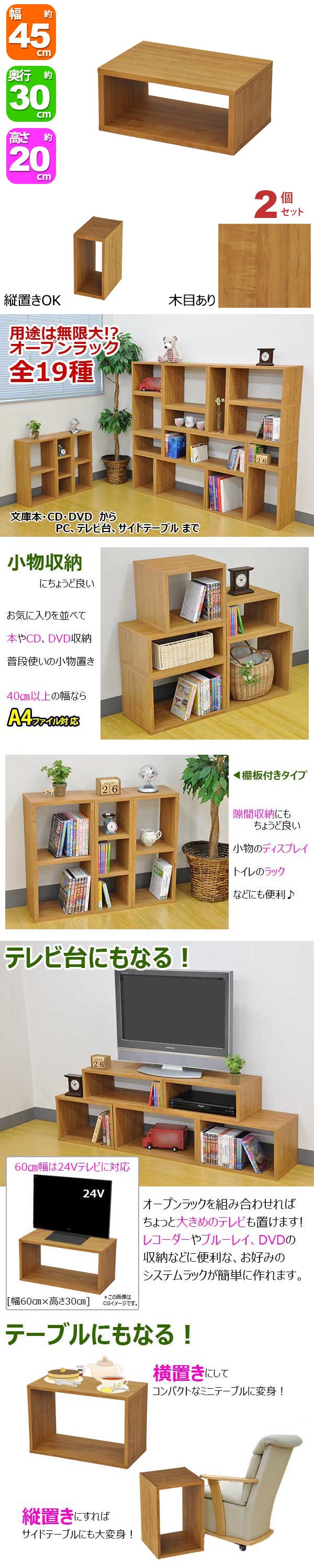 ・A4ファイルを収納したり、小型のテレビ台やパソコン台として使ったり、花台として使ったりとアイディア次第で様々な使い方ができます!