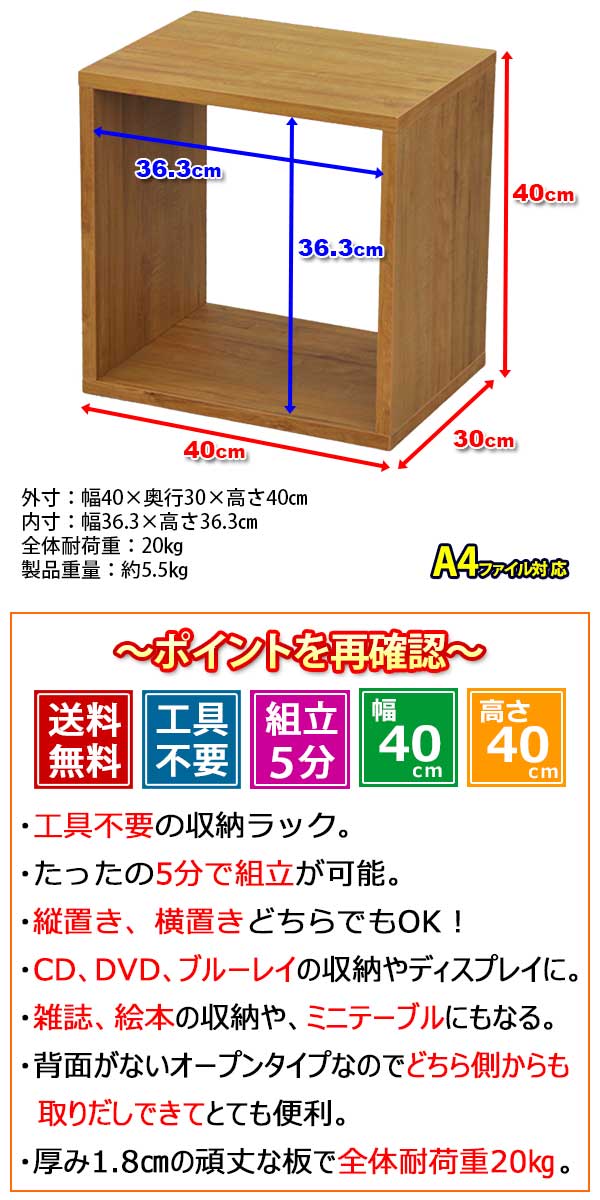 ・A4ファイルを収納したり、小型のテレビ台やパソコン台として使ったり、花台として使ったりとアイディア次第で様々な使い方ができます!