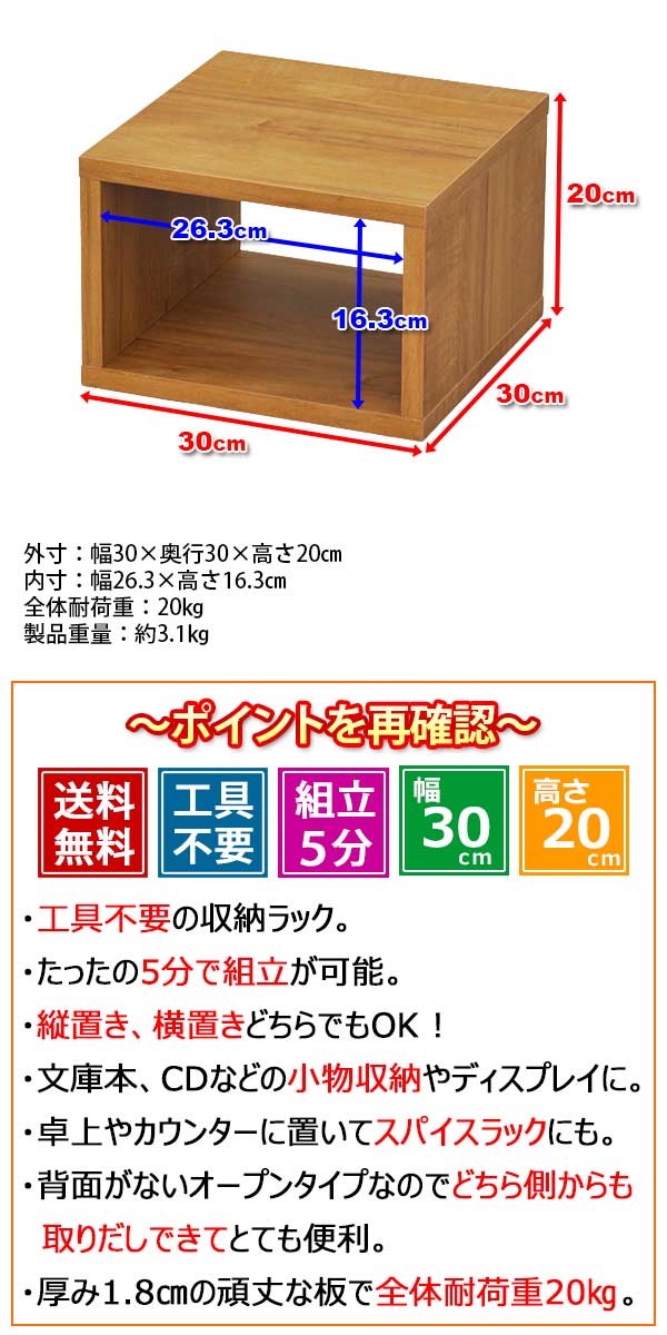 外寸:幅30cm 奥行き30cm 高さ20cm(30×30×20)