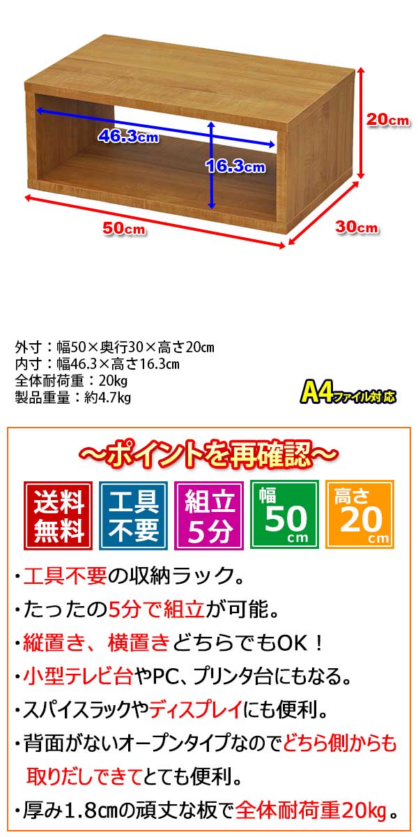 ・A4ファイルを収納したり、小型のテレビ台やパソコン台として使ったり、花台として使ったりとアイディア次第で様々な使い方ができます!