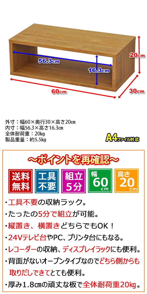 外寸:幅60cm 奥行き30cm 高さ20cm(60×30×20)