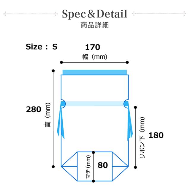 商品名:ラッピングキット リボン付きギフトバッグ【Sサイズ】幅17×高さ28(18)×底マチ8cm