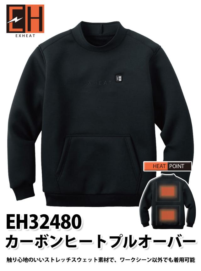 2024年新商品 サンエス SUNS EH32480 カーボンヒートプルオーバー ストレッチ スウェット素材 電熱ウェア モバイルバッテリー対応 裏地起毛 モックネック 男女兼用 企業 法人 釣り バイク 防寒着 スポーツ観戦 S~4L メンズ ユニセックス 作業服 作業着