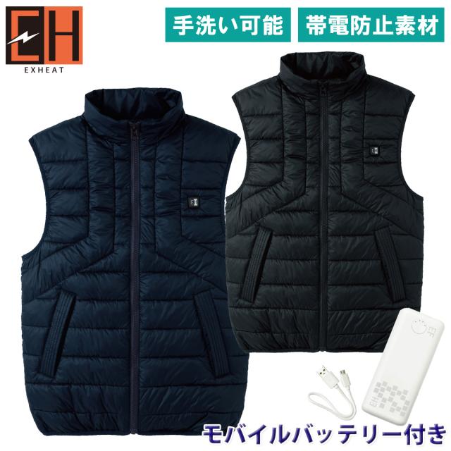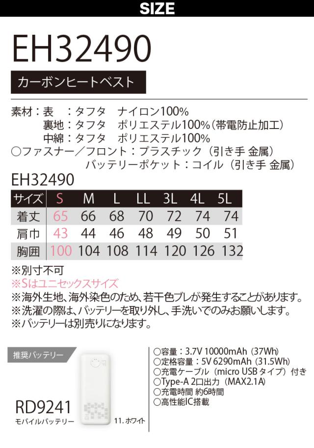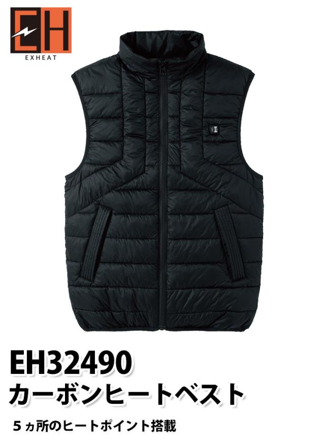 2024年新商品 サンエス SUNS EH32490/RD9241 カーボンヒートベスト×モバイルバッテリーセット 帯電防止 電熱ウェア 5か所ヒートポイント搭載 男女兼用 釣り バイク 防寒ベスト 土木 工事 現場 S~5L メンズ ユニセックス 作業服 作業着