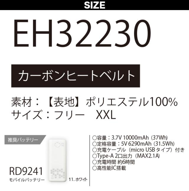 サンエス 電熱 EH32230/RD9241 カーボンヒートベルト・モバイルバッテリーセット 腹巻 腰バンド 発熱体内蔵 保温 防寒 アウトドア レジャー 釣り 作業着 作業服 エクスヒート
