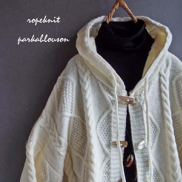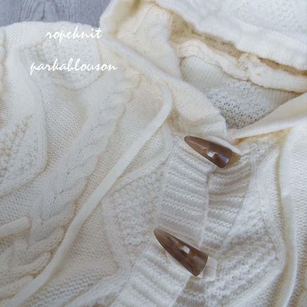 お洒落な縄編みと暖かさが特徴的なコートです。