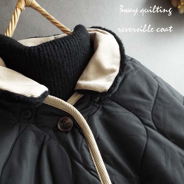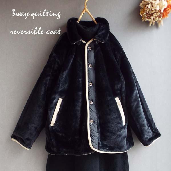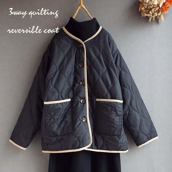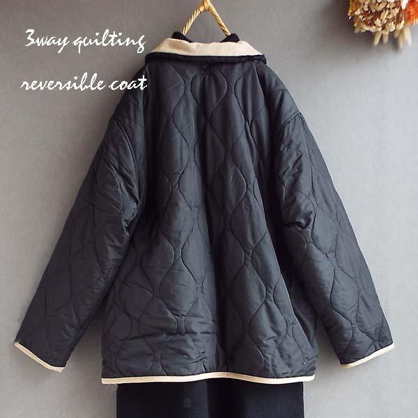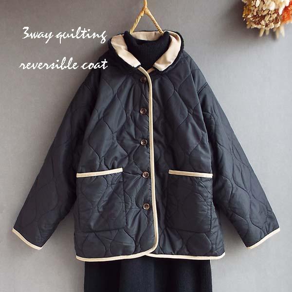 コート ブルゾン レディース 3Way リバーシブル キルティング ブルゾン 体型カバー 上品 ゆったり 冬 40代 50代 s3743