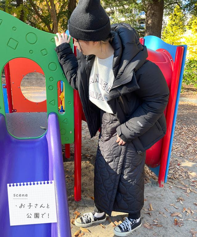 コメント:Mを着用しました。脚全体をカバーしながらも引きずらない、丁度良いサイズ感でした。