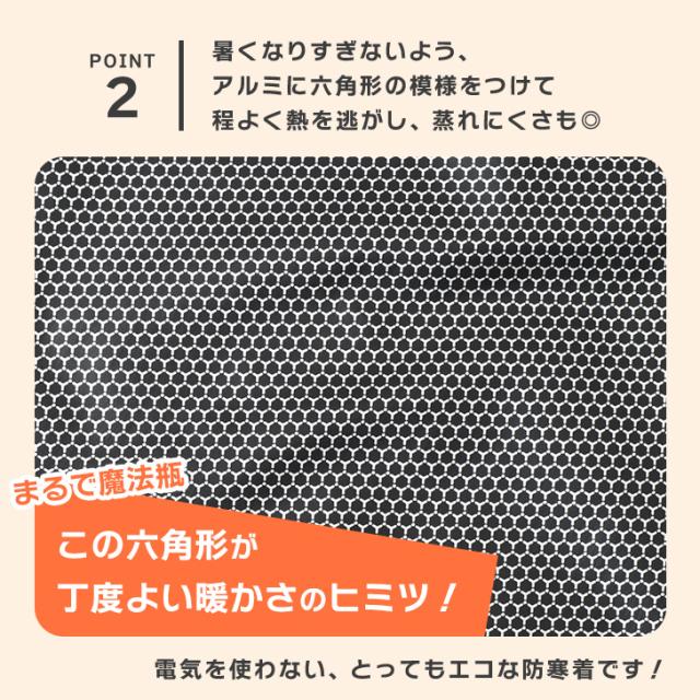 体温の熱を反射し閉じ込めるアルミプリントで魔法瓶のような暖かさ!