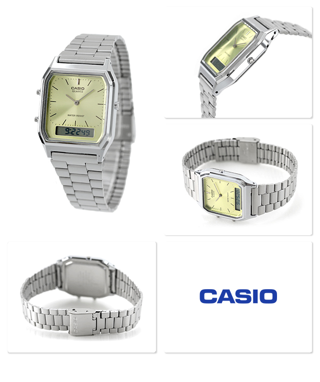 7年保証キャンペーン カシオ CASIO ビンテージ チプカシ クォーツ 電池式 海外モデル クォーツ 電池式 ユニセックス 腕時計 AQ-230A-9AMQYDF Vintage アナデジ イエロー ◆クラシックなアナログとデジタルの組み合わせが美しい色合いで彩られています。サンレイダイヤルが特徴で、昔ながらのデザインに色鮮やかでエレガントなひねりを加えています。日常使用に耐える耐水性と、ストップウォッチ、アラームなどの便利な機能を備えています。誕生日や記念日などのプレゼントにもおすすめです。 日本未発売モデル